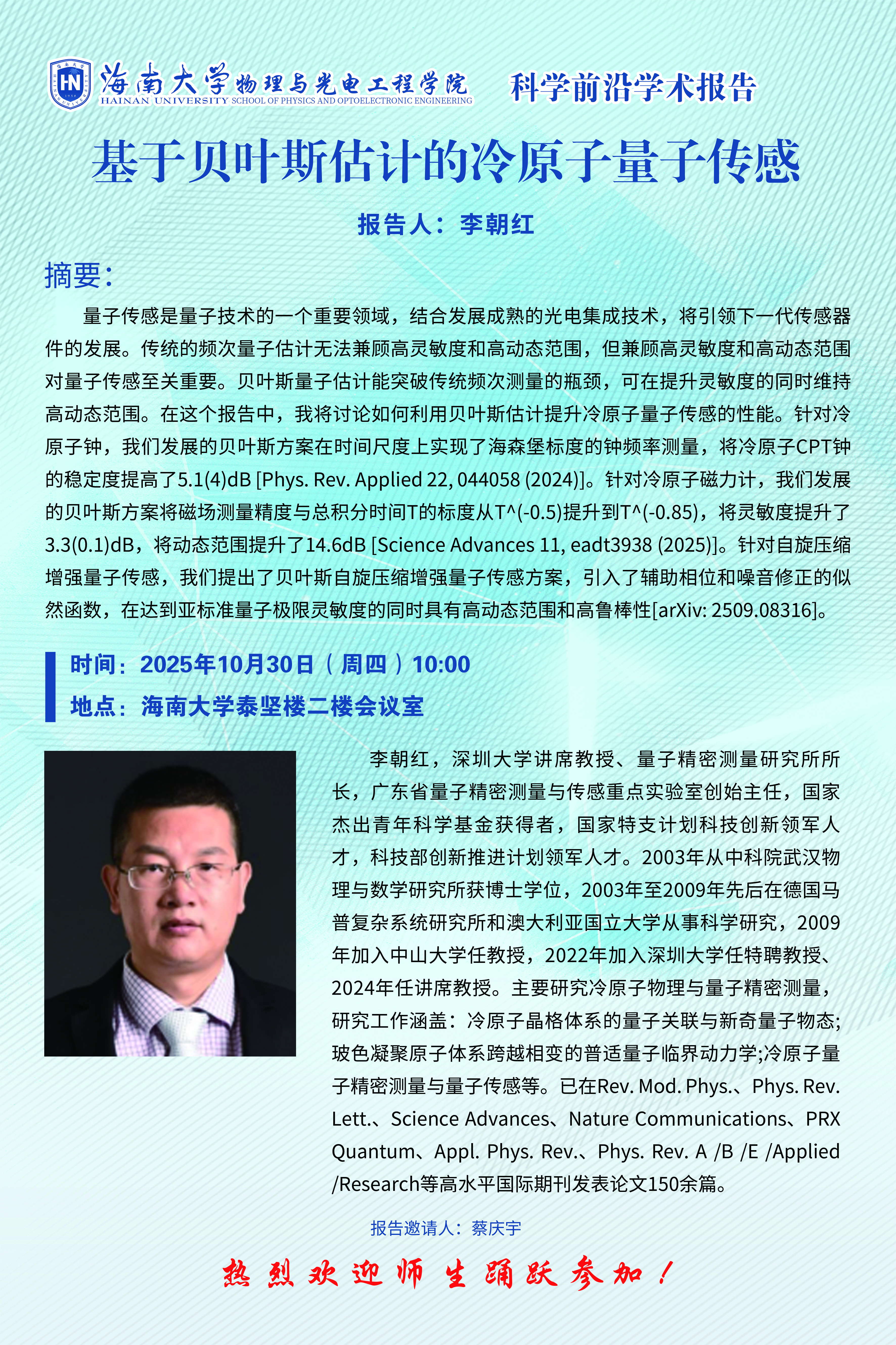 科学前沿学术报告(六十三):基于贝叶斯估计的冷原子量子传感